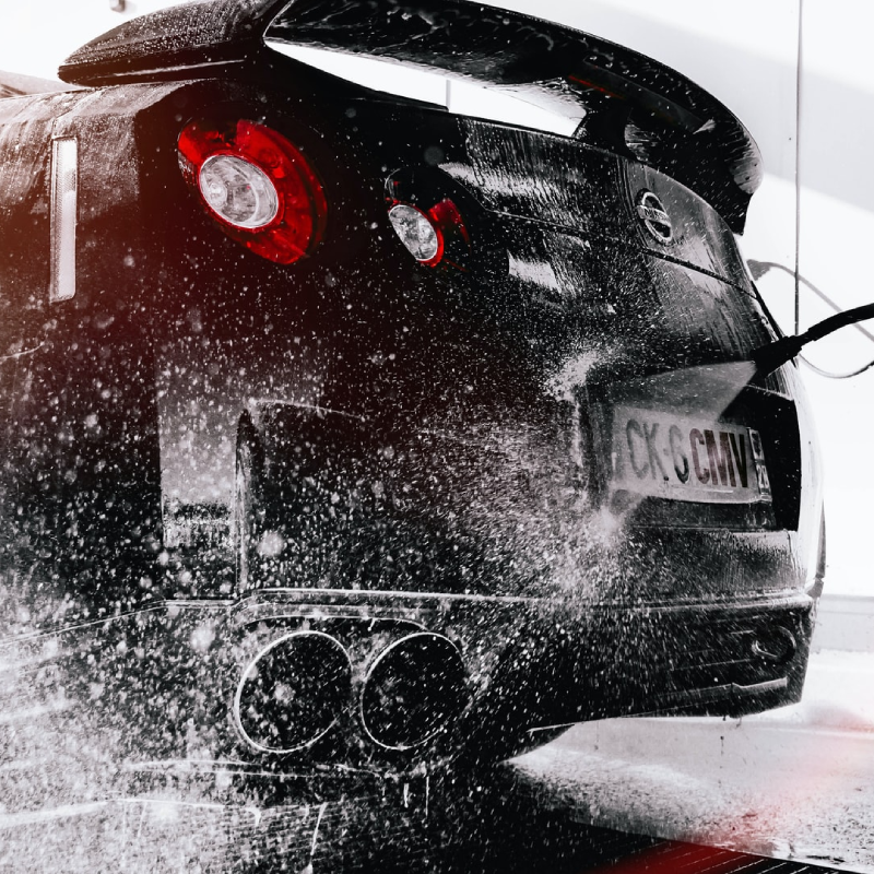 Procesul de spalare exterior presupune mai multe operațiuni. Autoturismul este spălat cu spumă activă și cu jet de apă de înaltă presiune de ultimă generație, preșurile se aspiră și se periază sau după caz se spală cu jetul, jantele se curață cu o soluție puternică ce îndepărtează depunerile de praf negru de la frânare.